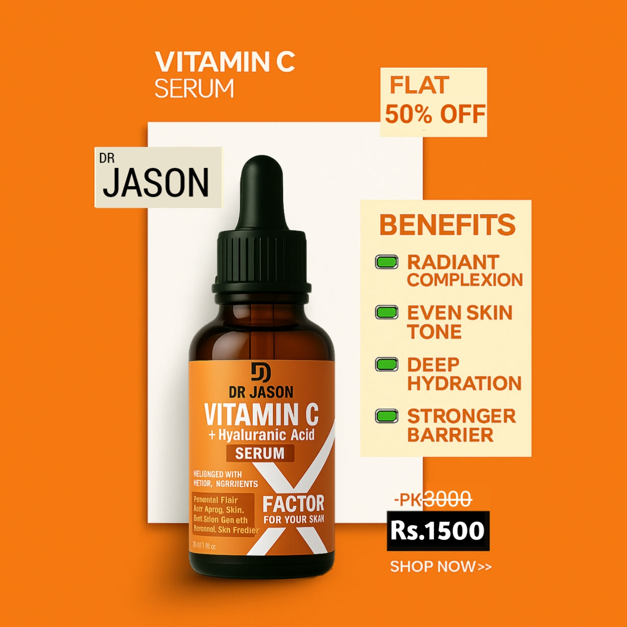 Introducing Dr Jason s X Factor Vitamin C Hyaluronic Acid Serum a versatile and effective addition to your skincare routine that is perfect for both men and women This serum is packed with numerous beauty benefits that will give your skin a radiant glow youthful appearance intense hydration and an antioxidant shield against free radicals The serum s unique blend of Vitamin C and Hyaluronic Acid helps to even out skin tone improve texture and boost collagen production leaving your skin firmer and more elastic The non greasy formula is suitable for all skin types and is quickly absorbed for seamless integration For optimal results use this serum daily both day and night With its powerful and nourishing ingredients this serum is sure to become a staple in your skincare routine